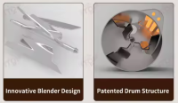 Noutatea cea mai mare este insa tamburul... adica lipsa lui... inghesuiala mare in spatiu mic i-a fortat la o solutie fara tambur, cu palete agitatoare. Care creeaza si spatiu mai mult intre boabe si lampa, un lucru bun.